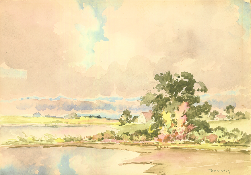 Arthur S. Douglas Collection Number 17: Lakeside Landscape Watercolor on Paper, Size 8" X 11"
